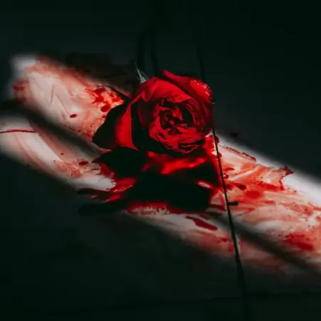 Thế giới ảo mộng bỗng chốc sụp đổ, phòng hoa sáng tỏ chìm trong bóng tối, anh bị giam cầm trong lồng hoa đầy gai nhọn, tay chân bị trói trên giường, trong tay nở ra một đóa tương vi, gai nhọn đâm vào da, máu chảy ra nhuộm đỏ cánh hoa. +